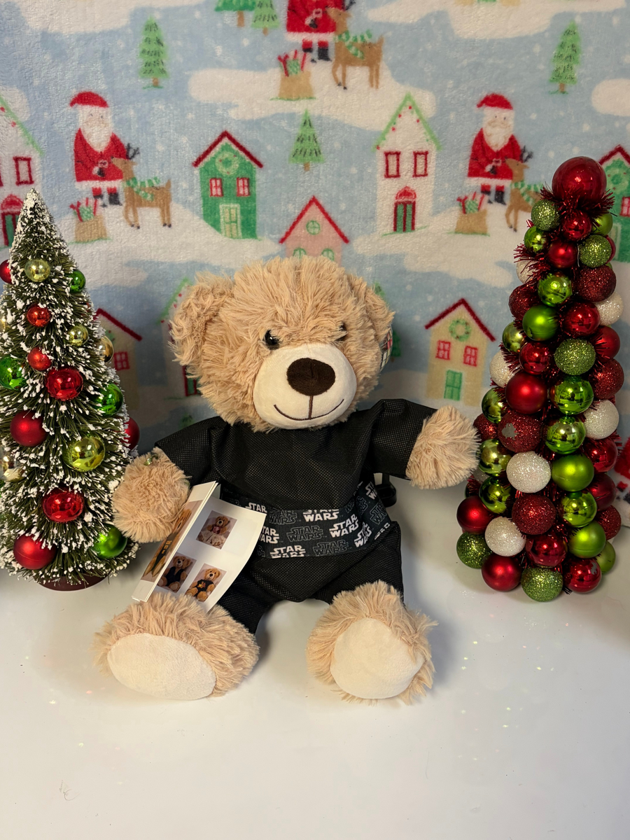 Galaxy Guardian Gentry is a handcrafted hero dressed in a sleek Star Wars–themed outfit, perfect for young adventurers who dream of distant galaxies and epic quests. With his soft tan fur, bright curious eyes, and calm, loyal spirit, Gentry brings the courage of a Jedi and the warmth of a steadfast friend wherever he goes. He proudly carries his How to Count book, ready to help his new companion explore numbers with confidence, curiosity, and intergalactic fun. Whether he’s joining imaginary space missions, sitting beneath the twinkling lights of a Christmas tree, or offering comforting cuddles after a long day, Galaxy Guardian Gentry fills every home with adventure, imagination, and heart. Handmade with love, powered by the stars — Gentry is ready to meet his forever friend.