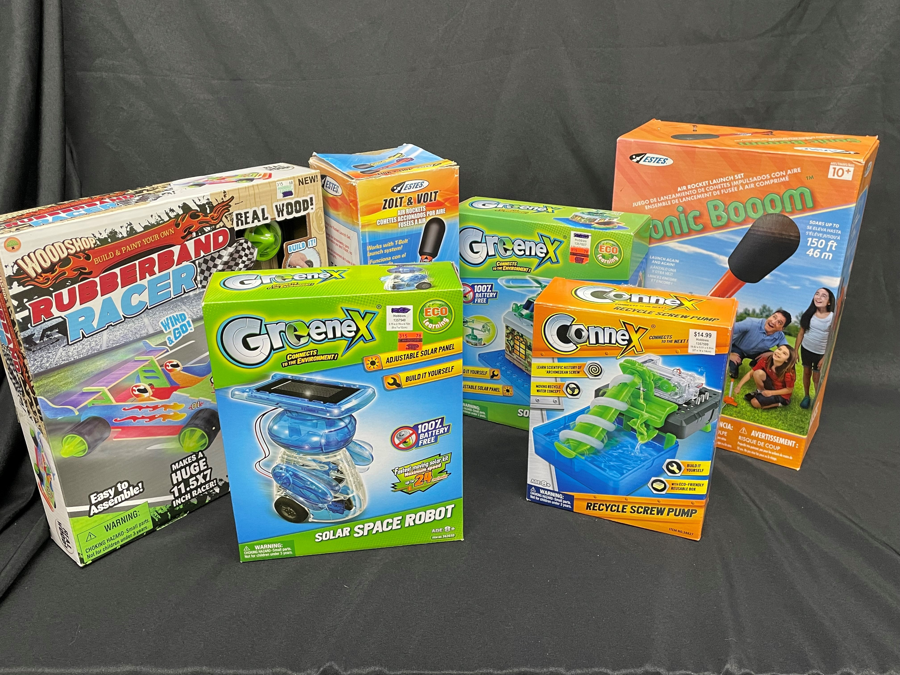 This exciting auction lot features a fantastic Game Collection that is perfect for both kids and adults! Dive into the world of creativity and engineering with a build-it-yourself solar robot, which allows you to harness the power of the sun while having fun. Experience the thrill of flight with the Zolt & Volt air rockets, designed for high-flying adventures. Additionally, unleash your competitive spirit with the rubber band racer, a classic game that brings joy and excitement to any gathering. Don’t miss your chance to own this diverse collection of games that guarantees hours of entertainment and learning!