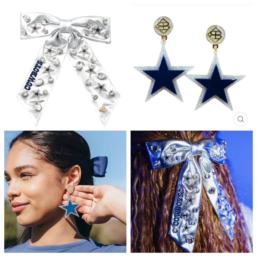 Show your Dallas Cowboys team spirit with these beautiful earrings and bow from Brianna Cannon.