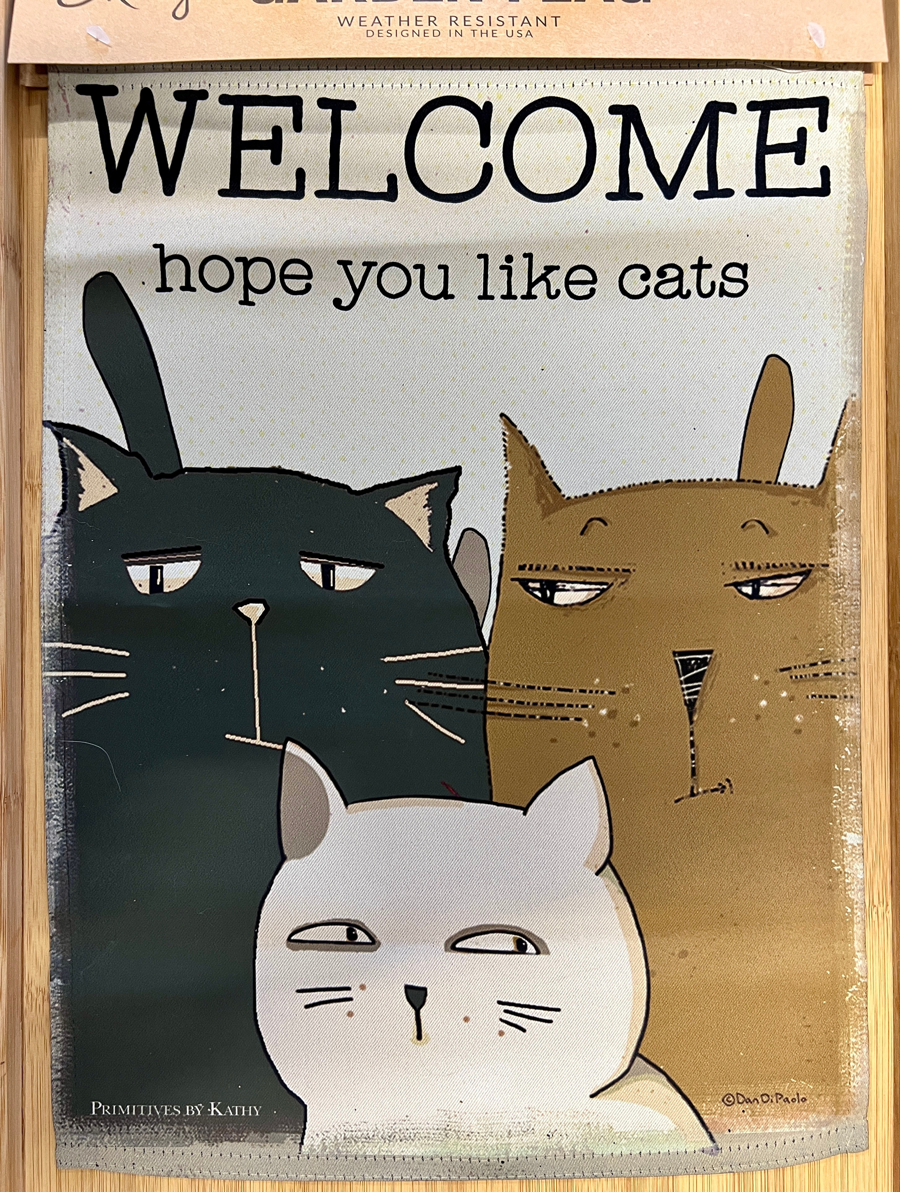 • Mini garden flag: “Welcome, hope you like cats”