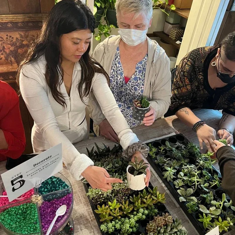 Garden workshop options include "Make a Bouquet or Centerpiece, Adopt a Succulent or Make a Flower Crown or Wand!