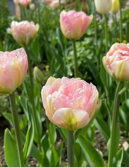 The Angelique Tulip is late season soft pink peony type tulip with light notes of cream and yellow. This whimsical romantic variety is the perfect addition to any spring garden. *Key differences from Foxtrot Tulip: Blooms later in season and taller more airy plant* Height: 15-18" tall Bloom Time: Mid-Late Season