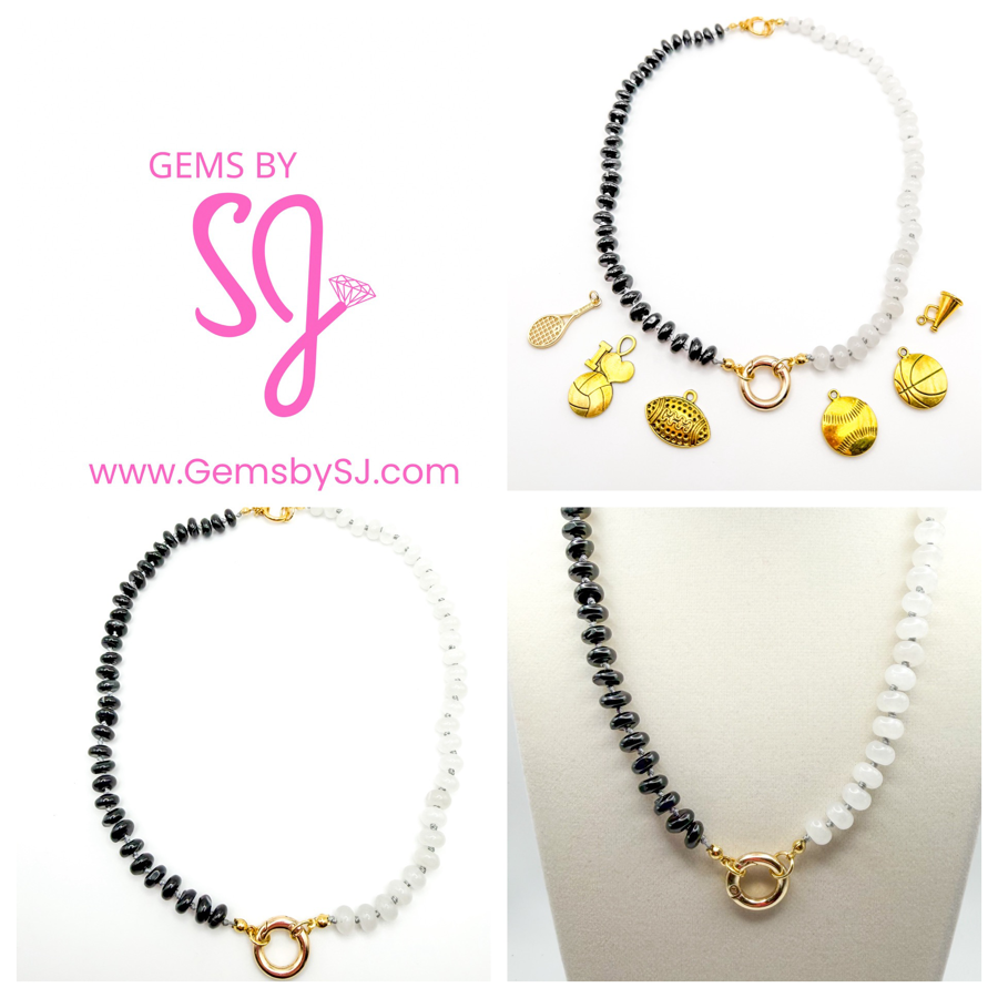 The perfect game day necklace with team colors! These are hand knotted & made with 8mm semi-precious jade gemstones.