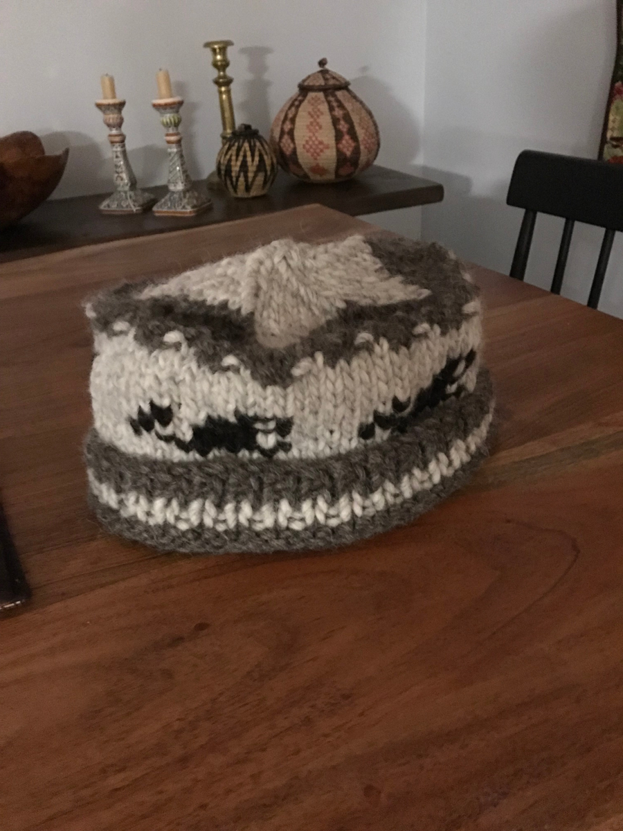 Imagine how warm you'll be in this genuine Cowichan hat, created by an indigenous knitter. The whale motif is a traditional Cowichan pattern. Vancouver Island through and through!