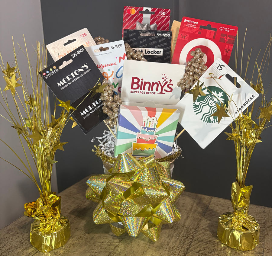 This ultimate gift card bundle has something for everyone! Treat yourself to shopping, dining, and indulgent treats with this dazzling Gift Card Tree Raffle Basket. 🌟 Includes: $50 each to Target, Foot Locker, Kohl’s, and Mastercard – perfect for anything from fashion to groceries. $30 to Morton’s Steakhouse – enjoy a fine dining experience. $25 each to Dunkin’ Donuts and Binny’s Beverage Depot – fuel up and unwind! $20 to Walgreens – for everyday essentials. $15 to Starbucks – your favorite pick-me-up. Whether you’re shopping, sipping, or spoiling yourself, this Gift Card Tree has you covered from coffee to couture!
