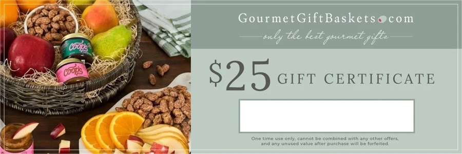 $25 Gift Certificate for GourmetGiftBaskets.com. Solicited by: Dr. Dianne Valdivia, MDC.