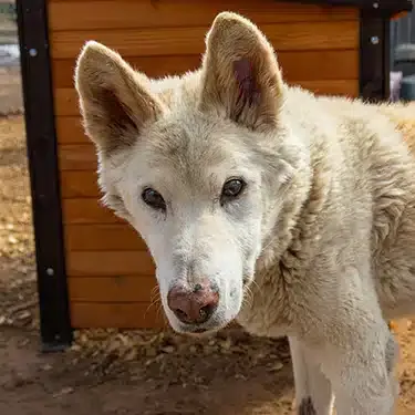 Paw and nose print created by Australian Dingo Glacier, who spent nearly his entire life at Wild Spirit along with his mother and two brothers. He joined our Big Pack in the Sky and was reunited with his family in 2024. Glacier was an incredibly charismatic fellow, who loved soaking up the attention of the humans around him. Glacier disliked waiting for his meal, as well as being shifted indoors during the winter. True to his name, he believed he should remain outside in -30 degrees F . . . We respectfully disagreed.