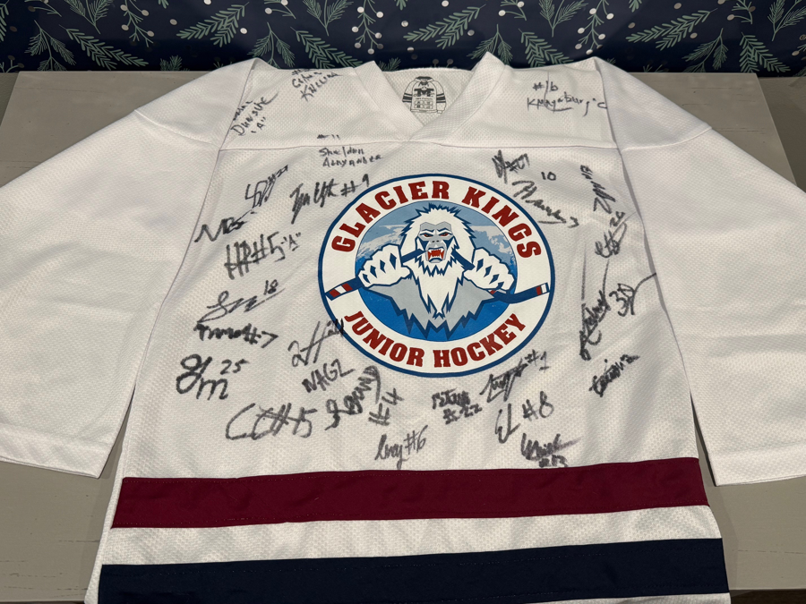 This Glacier Kings package is the perfect addition to any young hockey fan's collection. The Signed Jersey is a youth medium. With its vibrant colors and authentic design, this jersey not only represents the pride of the Glacier Kings but also makes a fantastic gift for hockey enthusiasts. Whether for a birthday, holiday, or just because, this signed jersey is sure to delight any young supporter of the sport. Don't miss out on this opportunity to own a piece of hockey memorabilia that showcases both team spirit and the thrill of the game! Donated by the Glacier Kings