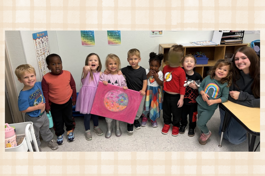 Ms. Abbey created a fun, textured outline of a disco ball using glue, giving the canvas a raised, 3D effect. Then, each child added their own touch of creativity with watercolor paints, filling in the glittery ball and bringing it to life with color and personality. The touch of glitter makes it sparkle and shine, just like a real disco ball! ✨