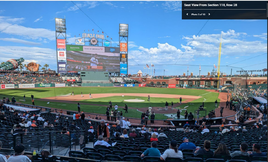 Wow! A fan's delight. Two seats and a $100 Giants gift card. Great seats: Section 118, Row 23, Seats 1 and 2 (View from the seats shown in the attached picture) Donor and winning bidder will agree on a date.