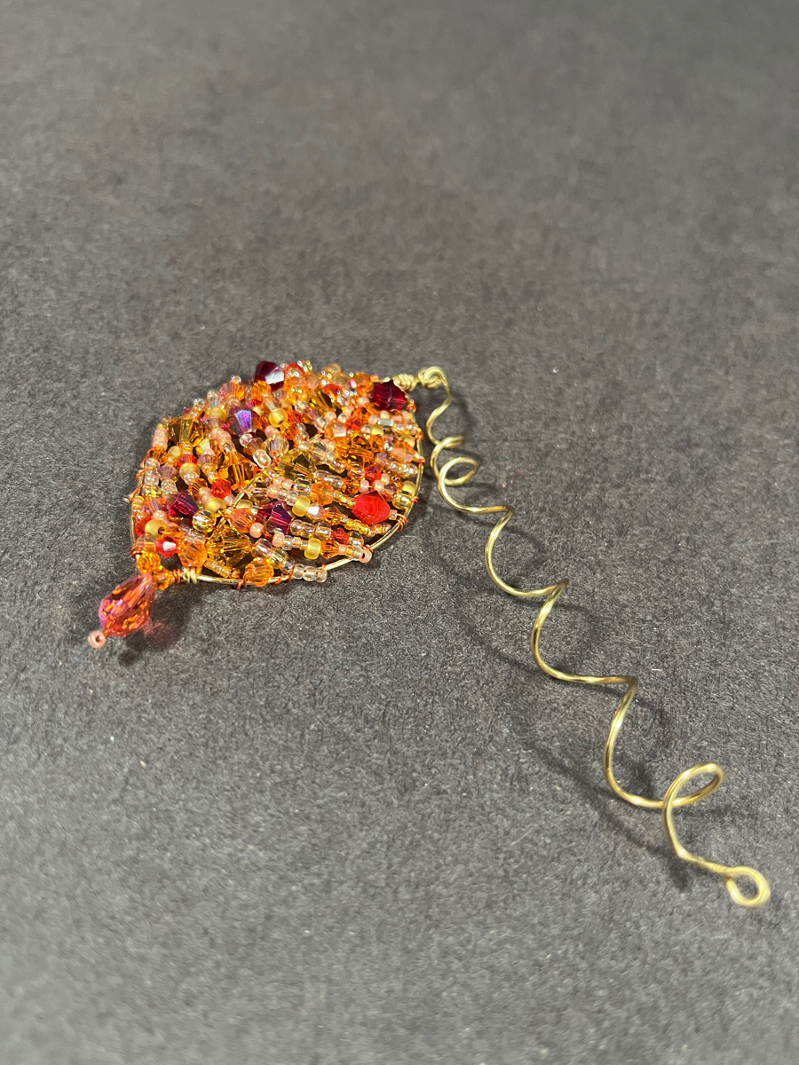 This red, orange and gold leaf will catch the light like an autumn leaf preserved at its peak.