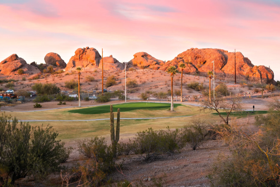 Enjoy a golf foursome including the golf cart and range balls from Grass Clipping Rolling Hills. Grass Clippings Rolling Hills is officially the first fully lit 18-hole golf course in Arizona. Located in the Papago Buttes, it sits 5 minutes from Arizona State University, downtown Phoenix, and Old Town Scottsdale. Valid until 9/30/2026. Valid Mon/Tue/Wed/Thur. Blackout dates apply due to events. Tee times may be booked up to 14 days in advance. All rounds must be used on the same day.