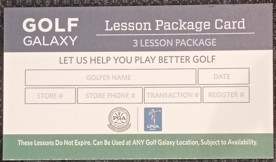 Want to improve your golfing game? Just getting started with golfing? Golf Galaxy would be happy to help you with three ½ hr lessons to either get you started on the right foot or up your game to another level.