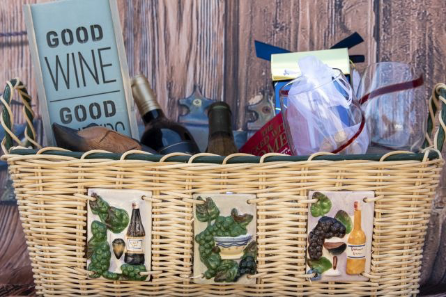 Contains bottle of 2022 La Crema Chardonnay, bottle of 2020 Meadowcroft Melbac, 2 wine glasses, 2 wine toppers, Ghirardelli Caramel Popcorn, ornamental cat sculpture, patio light display, and “The Wicked Wit of Women” book.