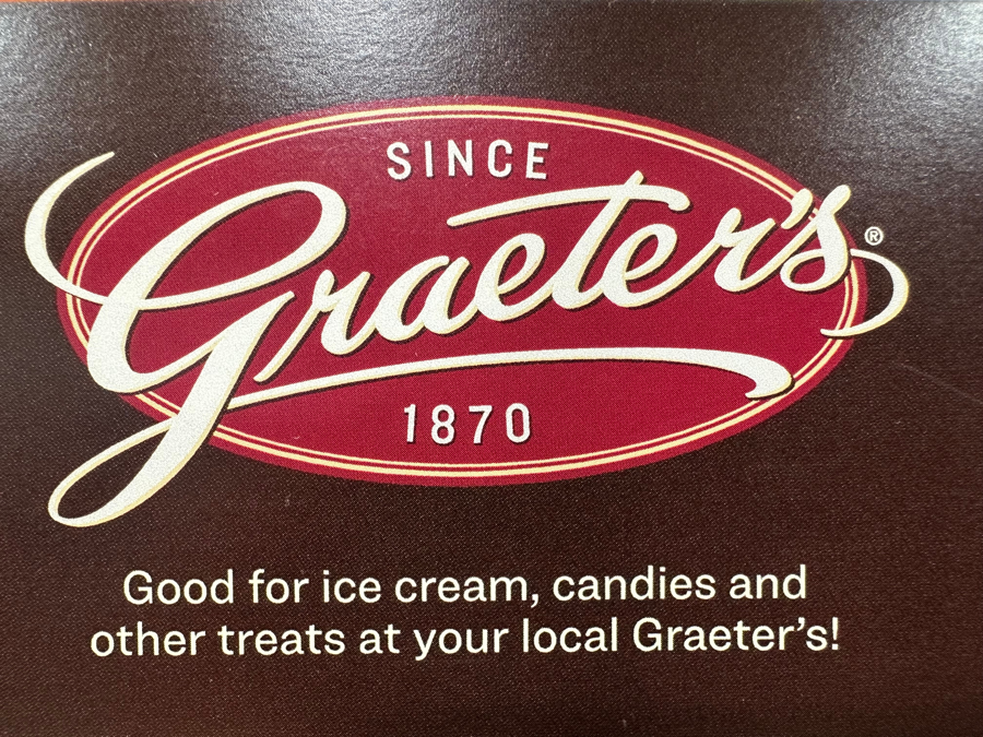 Graeter’s ice cream. Two certificates for $10. Each certificate gives you $10 off. It must be used in full at one time.