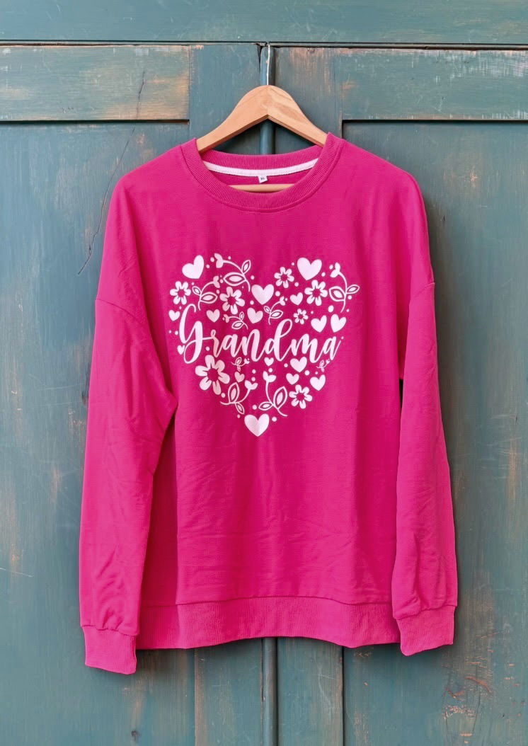 For the proud grandmother - A floral heart long sleeve sweatshirt in rose. New Size XL