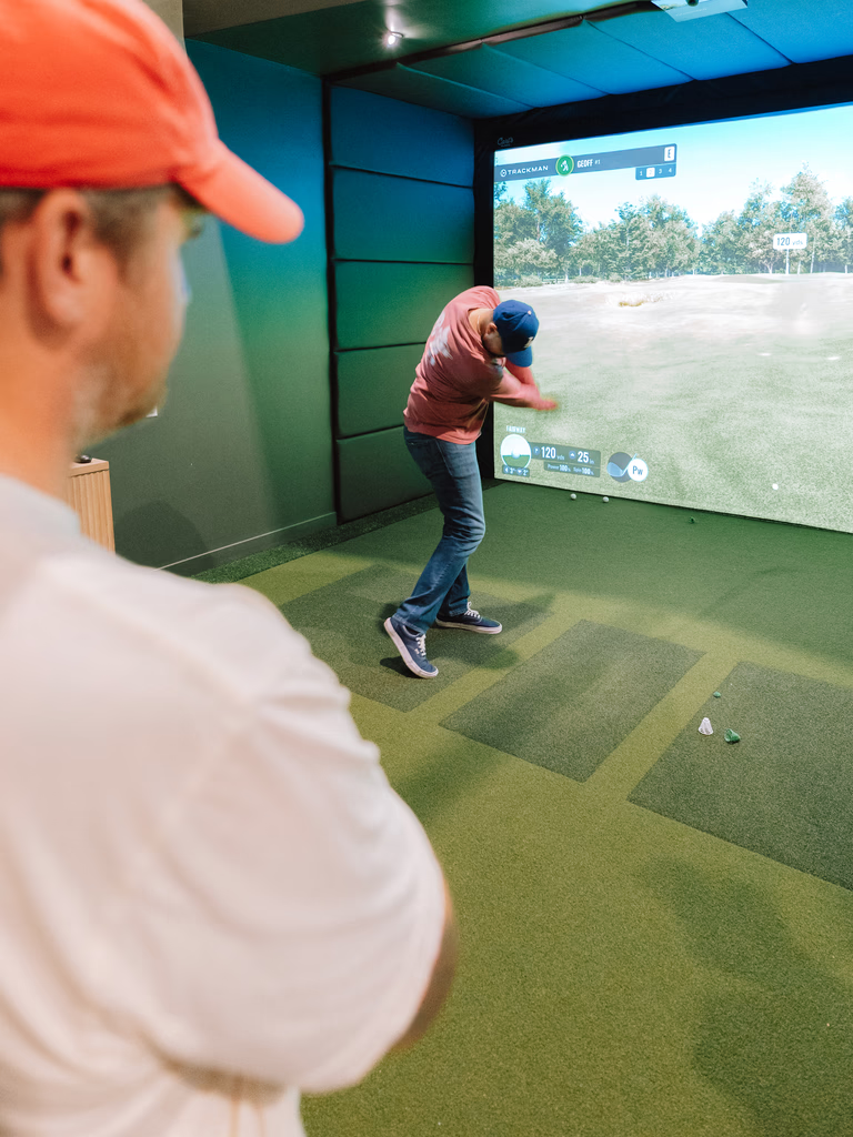 Enjoy the relaxed lounge atmosphere complete with a putting green, big-screen TVs with YouTube TV and Sunday Ticket, and a social, welcoming vibe perfect for friends, families, or coworkers. From lessons and club fittings to memberships, single sessions, and unforgettable group events, there’s something for everyone to enjoy.