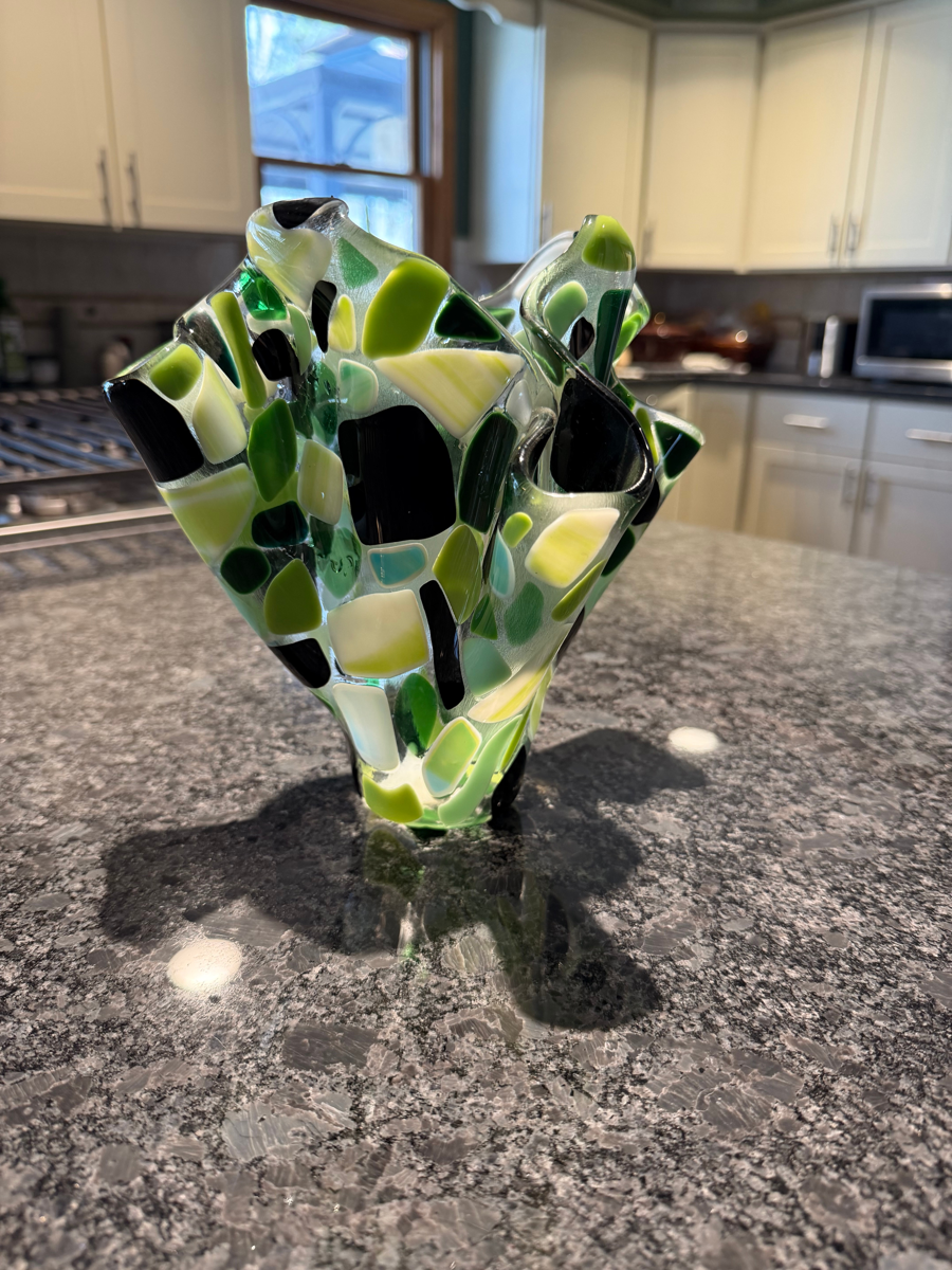 Green vase 8" wide x 8" tall