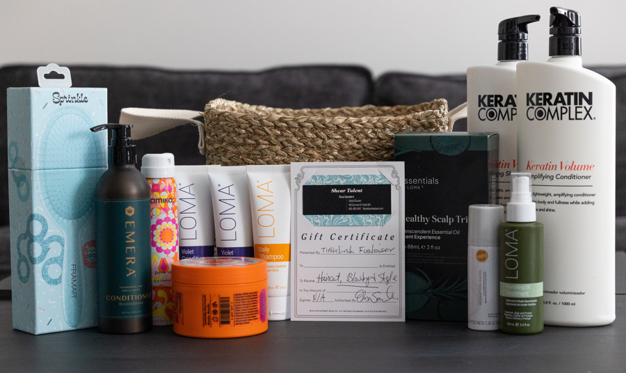 Hair Care Gift Basket + Gift Certificate for Haircut, Style & Blow-Dry