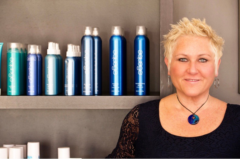 Enjoy one haircut at Ground Zero Hair Salon in Mt. Airy. Owner and stylist, Wendy Weinstein, has transformed the salon industry in Philadelphia over the last 35 years. She franchised six Ground Zero Salons, served thousands of clients and trained and educated more than 100 stylists. Once you have gotten your hair cut with Wendy you may never go anywhere else! Image Description A white woman with short blond hair and black top stands next to a shelf of hair products.