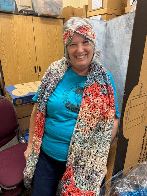 Hand Crocheted Pocket Scarf and Matching Head Band-Mrs. Doty ($40 value)
