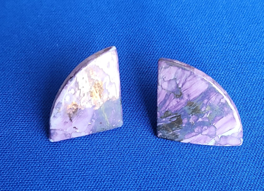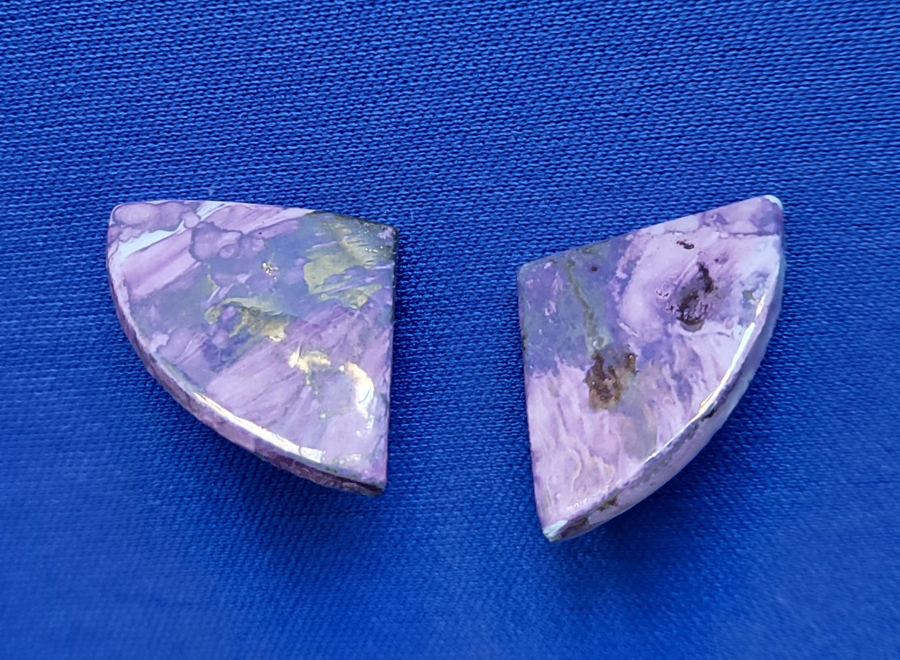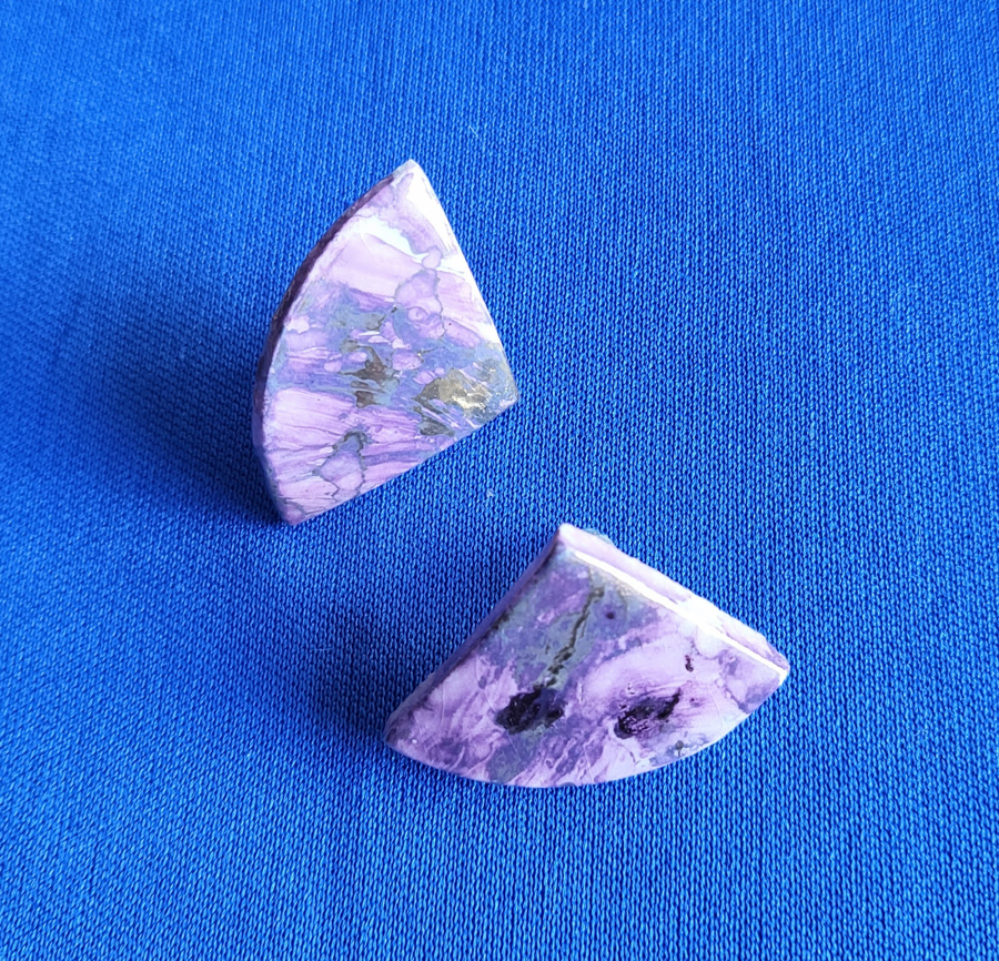 Shades of purple with metallic accents, very lightweight. Each measures about 3/4" on a side.