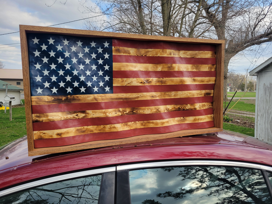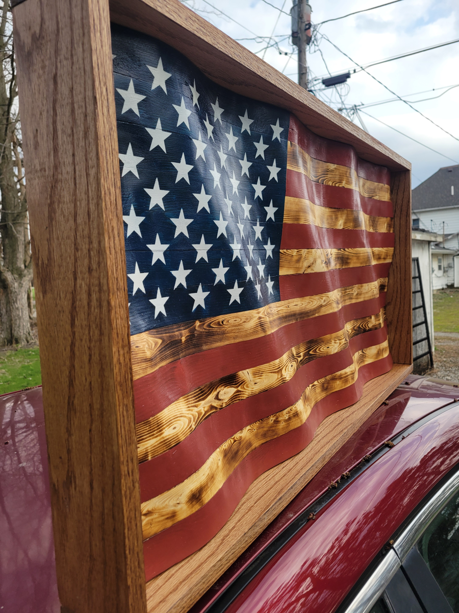 Hand-Burned Wavy Wood Flag – One-of-a-Kind American Wall Art