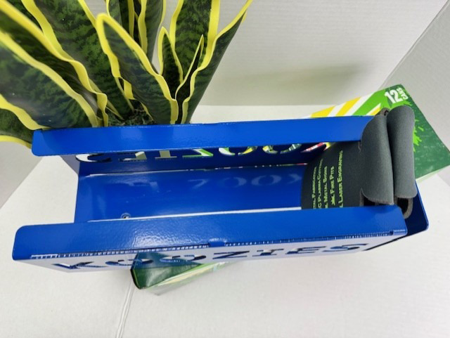 The koozie holder can be mounted to the wall or sit on any flat surface.