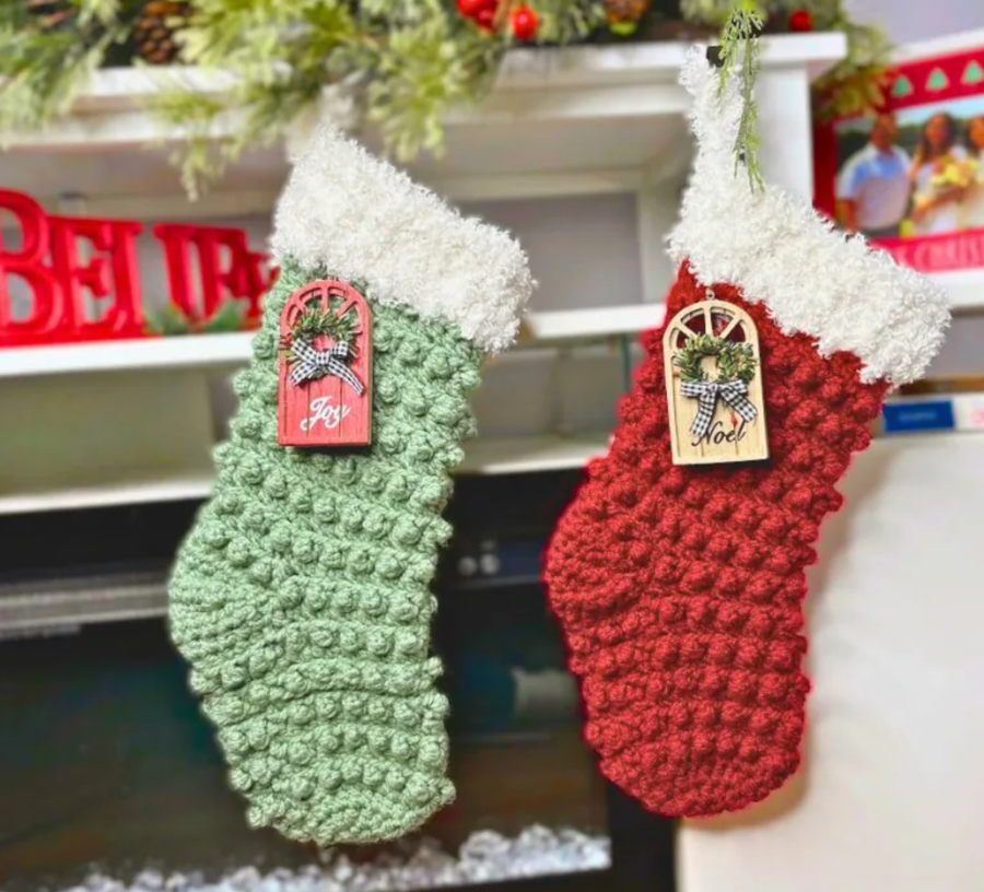 Add handcrafted magic to your holiday season with this beautiful hand-crocheted Christmas stocking, finished with a luxurious faux-fur cuff for an elegant, cozy touch. Measuring approximately 20” (50 cm) in length, it’s generously sized for thoughtful gifts, treats, and Christmas morning surprises. 🧶 Hand-crocheted craftsmanship ❄️ Soft faux-fur trim for a festive, elevated look 🎁 20” length — roomy and decorative ✨ A unique heirloom piece to treasure year after year Note: Stocking pictured is a sample only and not the exact item.