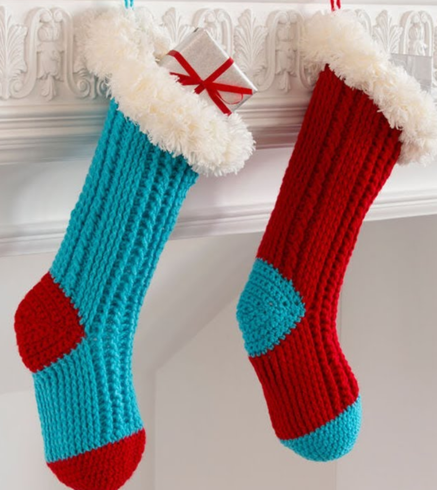 🎄🧶 Hand-Crocheted Christmas Stocking with Faux Fur Trim