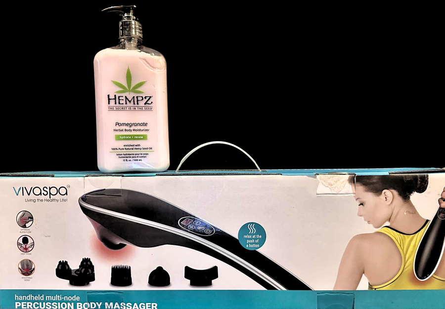Relax and pamper yourself with this self-care duo! Includes a Handheld Multi-Node Percussion Body Massager for soothing sore muscles and easing tension, plus a Hempz Pomegranate Herbal Body Moisturizer for deep hydration and soft, refreshed skin. Massager Features: Multiple interchangeable nodes Powerful percussion action Adjustable intensity settings Great for back, neck, shoulders, and legs Moisturizer: Enriched with hemp seed oil Pomegranate antioxidants Lightweight, fresh scent Perfect for wellness, recovery, or gifting. Bid now!