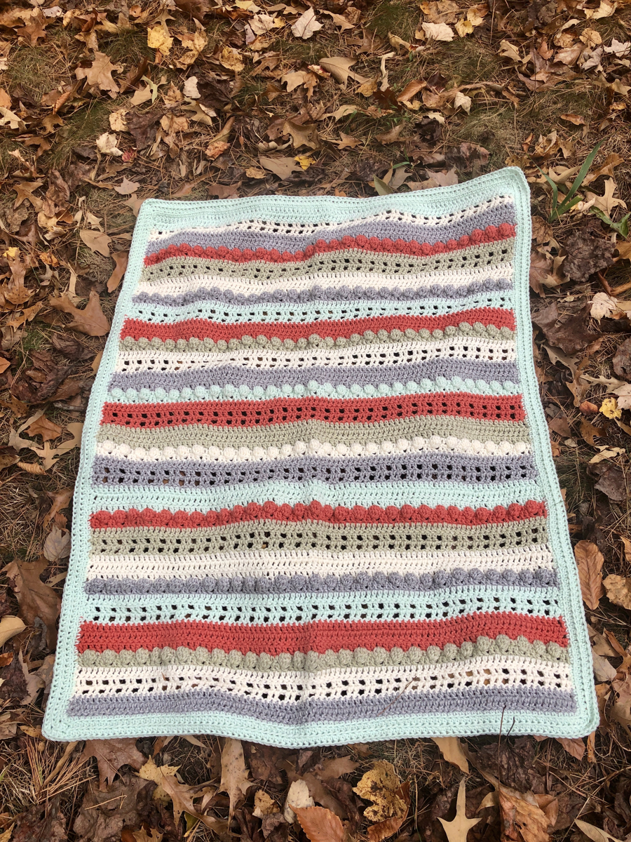 Barbara Carswell, daughter of longtime Strafford residents Bill and Dot Burden, has once again created some lovely crocheted pieces. This baby blanket measures 38"x40".