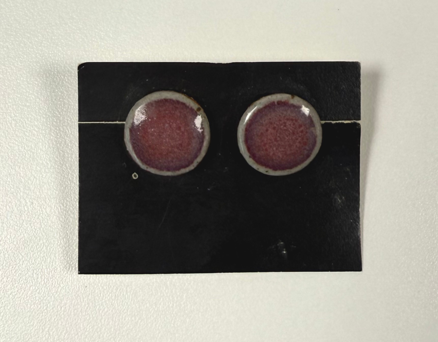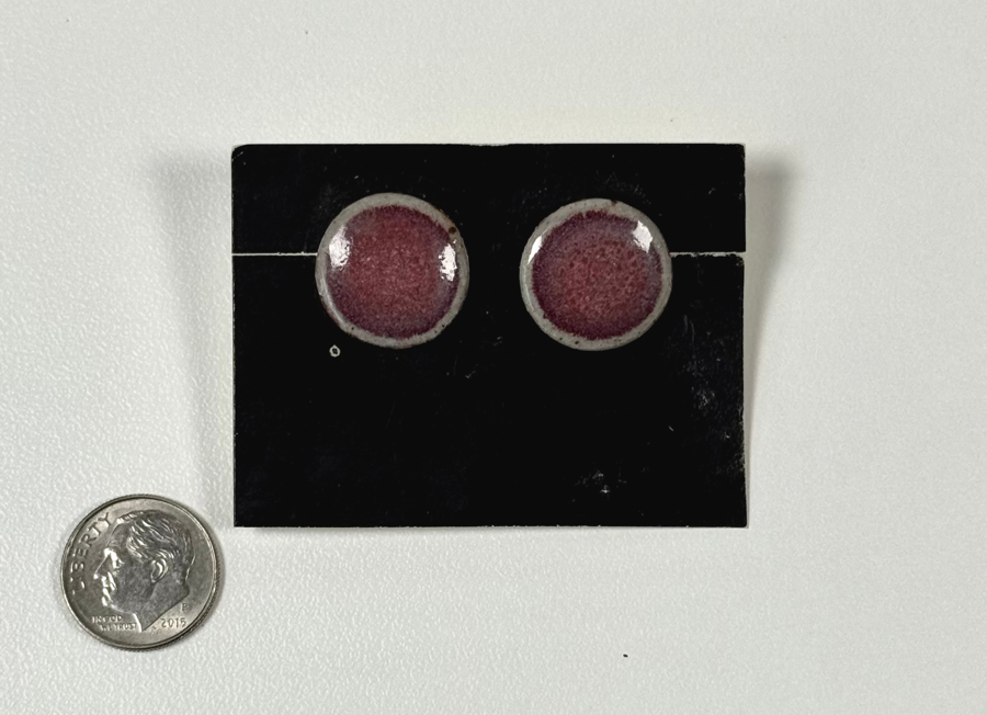 From the studio of potter Ron White, a pair of button-shaped post earrings in taupe. Diameter is 17mm.
