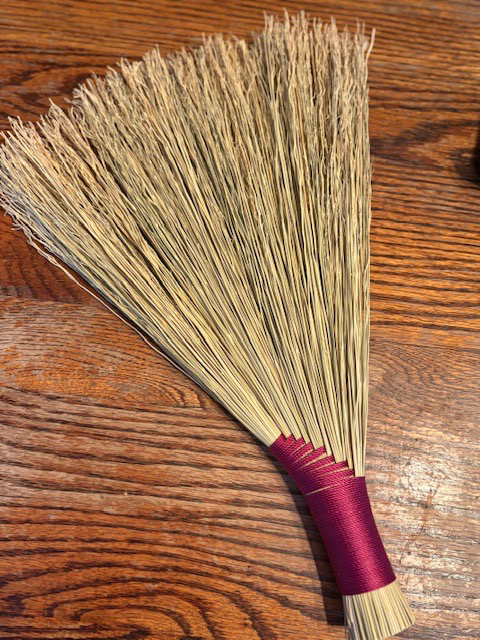 A handcrafted, durable broom made by Teacher Maia using traditional techniques and natural materials.