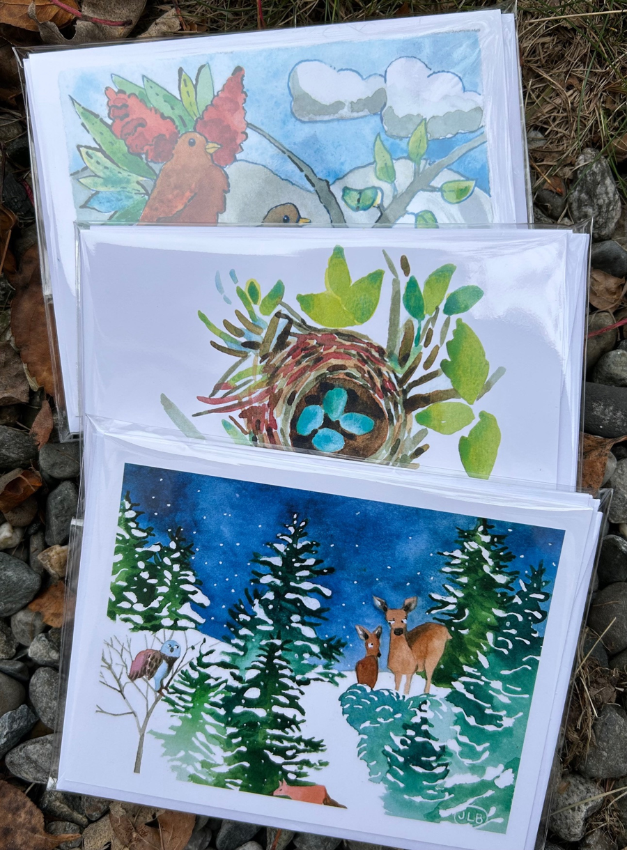 Local watercolor artist Jennifer Brown has created these lovely notecards. Set of three packages, with 4 in each package.
