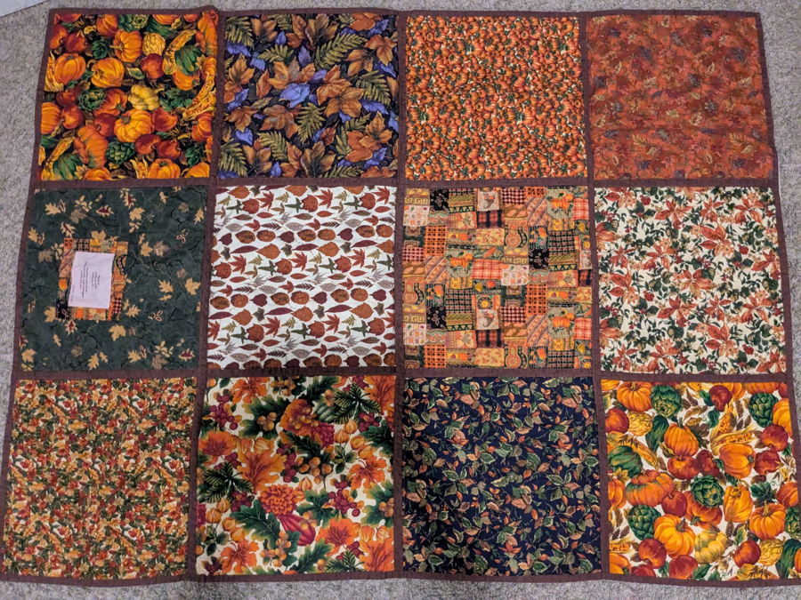 Add warmth and seasonal charm to your home with this handmade reversible lap throw featuring a cozy fall theme. Measuring 58.5" x 44", it’s perfect for snuggling on the couch, layering on a bed, or adding a festive touch to your living space. A heartfelt thank you to Debra for this beautiful and thoughtful donation!