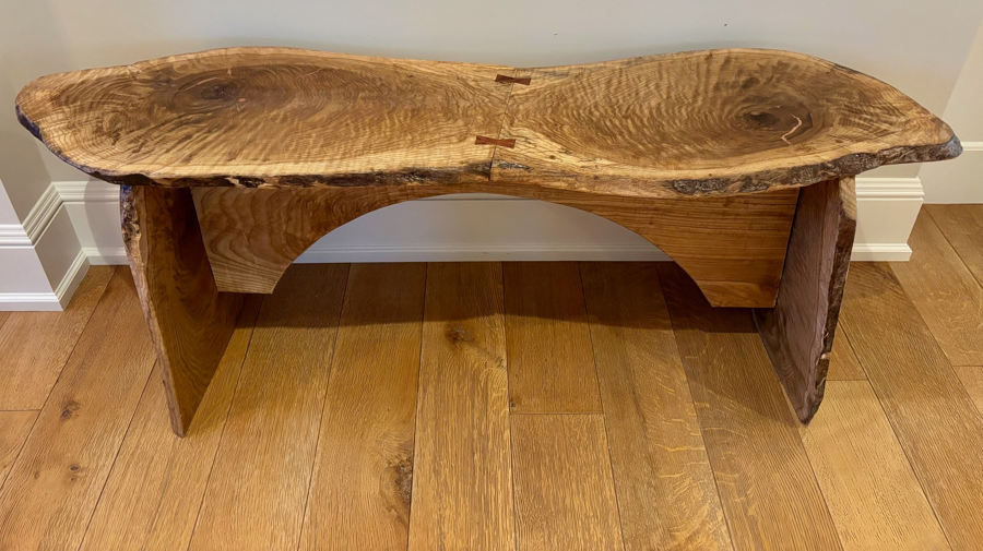 Handmade rustic live edge bench, solid white oak- Made with Minnesota native wood - 51` long x 20` high x 14` deep