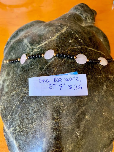 Handmade gorgeous stone bracelets by our beloved Jen Simard. In her memory, we auction off these gorgeous bracelets. This item comes as set of three bracelets; Onyx and rose quartz on gold filling Fresh water pearl and gold filled beads on a gold filled bracelet Fresh water pearl and hematite on sterling silver