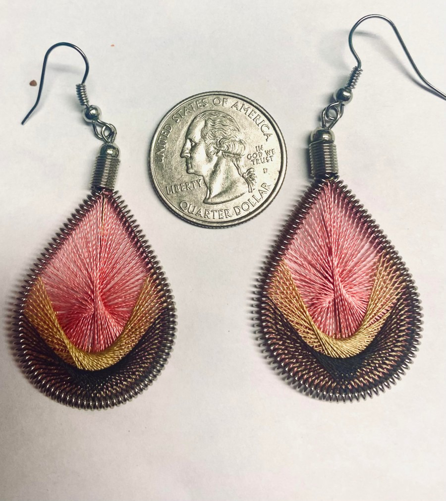 Handmade Tear Shape Mandala Earrings in Pink, Brown & Gold