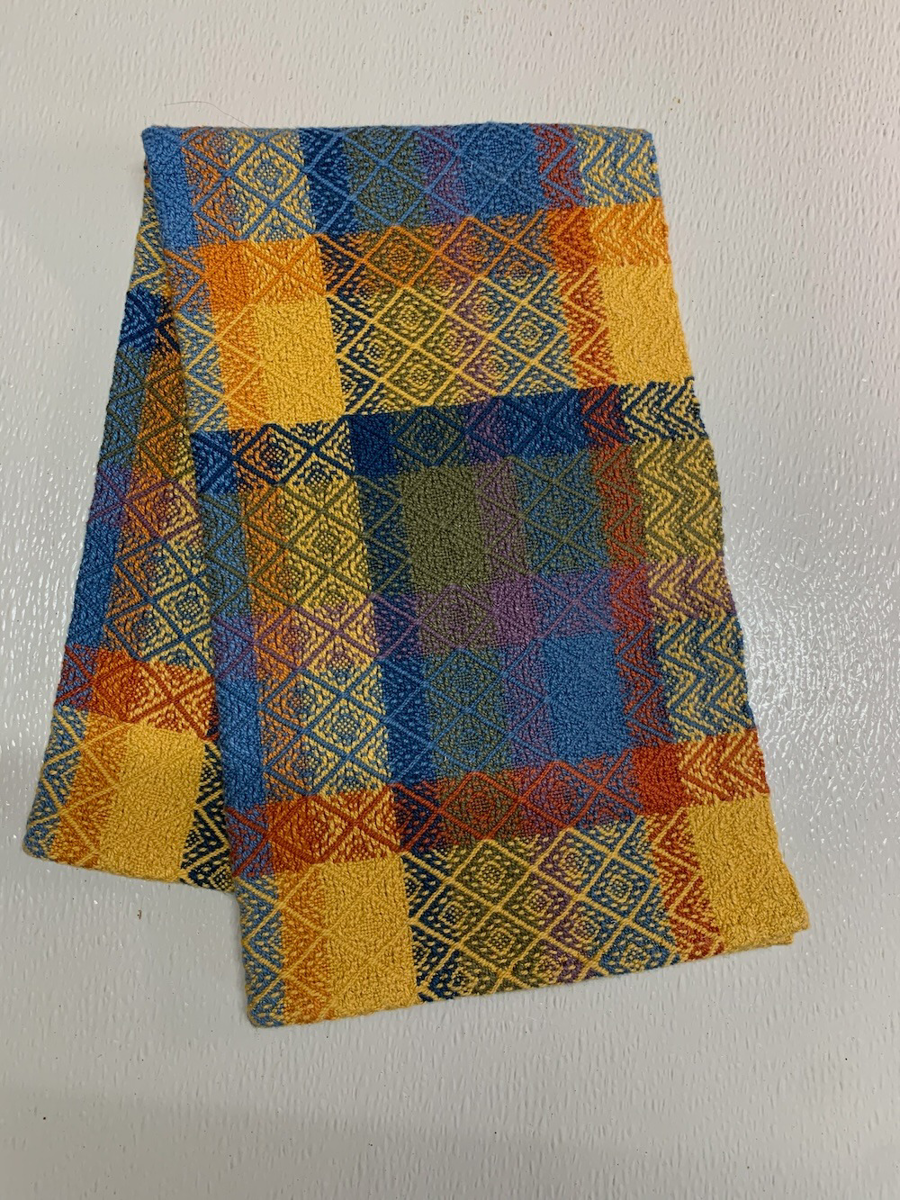 Gorgeous hand-woven tea towel, made by the Library's own Susan Smolinsky. 100% cotton, towel measures 13 x 22 . The colors inspired by Henri-Edmond Cross' watercolor "The Artist's Garden at Saint-Clair".