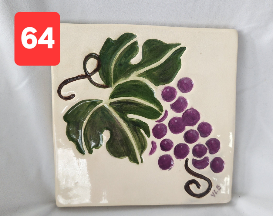 Hand-Painted Pottery - Trivet with Grapes