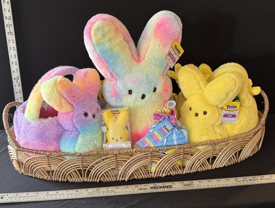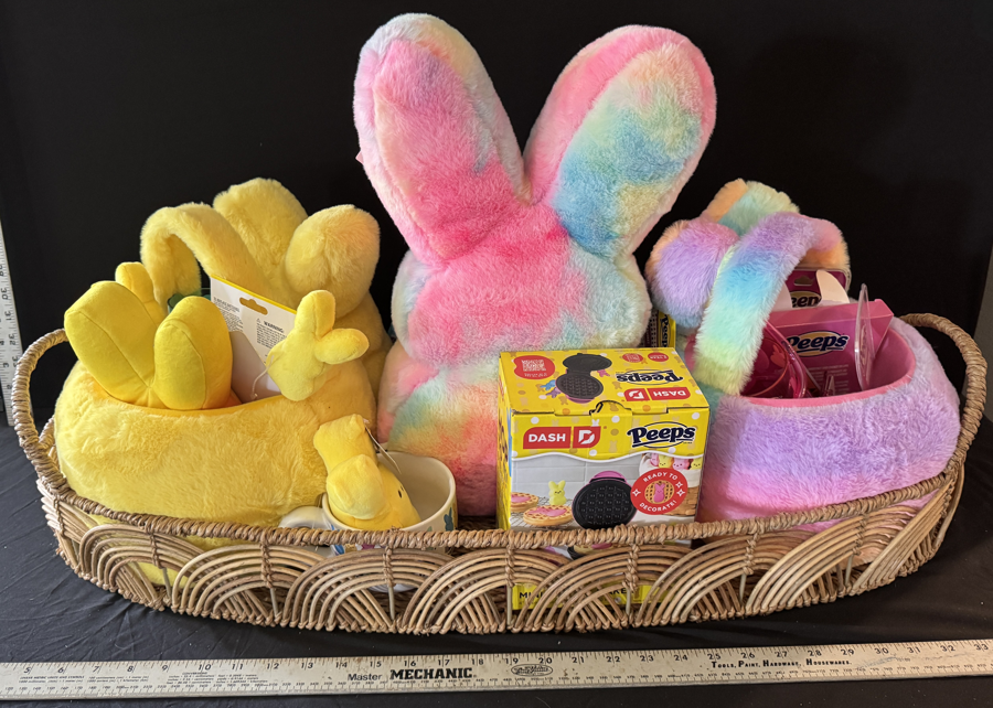 Get ready to celebrate Easter with our delightful "Hangin with My Peeps" auction item! This fantastic set includes a 6pc Lip Gloss Lip Balm Set to keep your lips soft and colorful, along with a charming Palm Pet that’s perfect for cuddling. Enjoy your favorite drinks with the stylish Light up Bluetooth Speaker and the vibrant Light up Tumbler with Straw, ensuring your beverages are always a treat. The Plush Easter Basket is perfect for holding all your goodies, and the included Head Band adds a fun touch to your festive outfit. For those cozy nights in, we have Adult Sleep Pants in size S/M, featuring a trendy Tie-Dye Plush design that’s both comfortable and stylish. Don't forget the 16pc Press-On Nails to give your nails a fabulous makeover, and you'll also receive 1 Peeps Ring to add a playful touch to your accessories. Quench your thirst with the Pink Light Up Straw Cup, and enjoy some sweet treats with Bunny Pucker Pops. Plus, there's an adorable Bunny Plush in a Mug to keep you company. As a bonus, we’ve included a Mini Chick Waffle Maker to whip up delicious breakfast treats. This auction item is packed with everything you need for a fun and festive celebration with your favorite peeps!