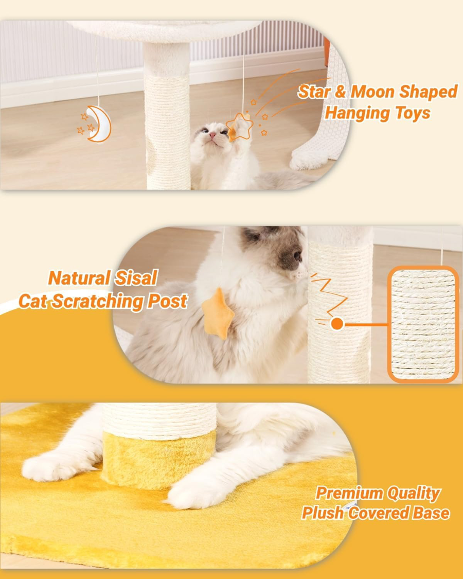 Happi N Pets 28" Tall Cat Scratching Post with Bed, Small Cat Tree for Indoor Cats, Thick Cat Scratch Post with Cloud-Shaped Soft Perch & Cute Toys, Stable Cat Stand, Removeable Cover