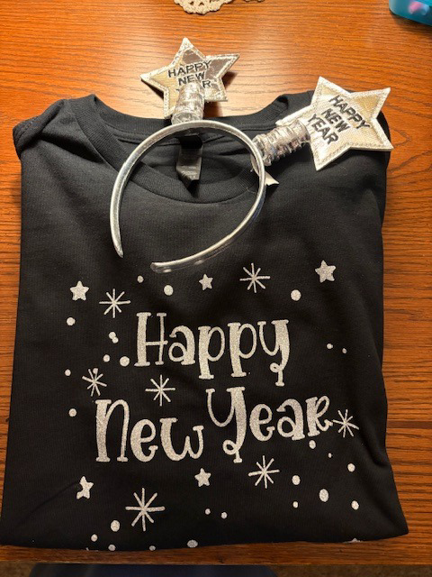 Celebrate the New Year in style with our Happy New Year Long Sleeve Tee and Headband set! This comfortable long sleeve tee is perfect for your New Year's Eve festivities, allowing you to ring in the new year with flair. The soft fabric ensures you stay cozy while you enjoy the celebrations, and the included headband adds a festive touch to your outfit. Make this New Year's Eve memorable with this stylish and fun apparel combo! (Size Large)Do not dry