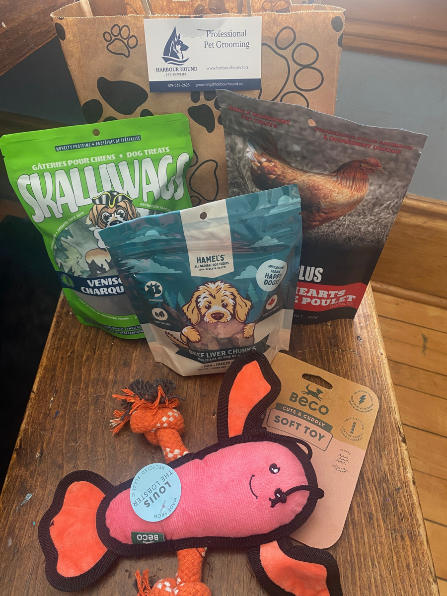 3 Canadian made dog treats and an eco friendly dog toy!