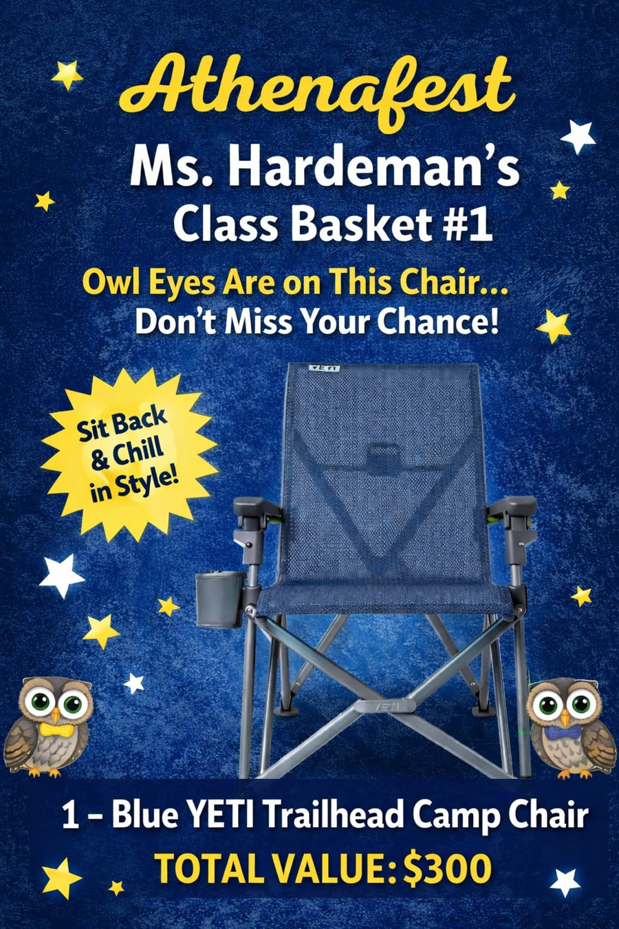 Keep your owl eyes on this prize — the YETI Trailhead Camp Chair in bold blue is ready for your next adventure! Built with YETI’s legendary durability and comfort, this premium chair features ultra-strong FlexGrid™ fabric, a supportive ergonomic design, and a sturdy folding frame that goes wherever the fun happens.