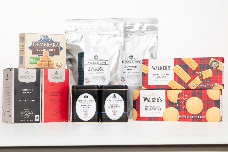Harney's gift basket with ASF's signature Scottish Morn and Scottish Afternoon Tea.