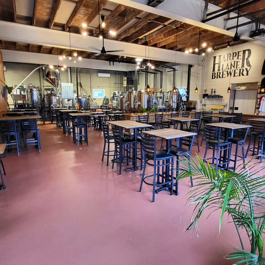 Harper Lane Brewery typically maintains 12 rotating taps, offering a variety of beer styles and hard seltzers. Pours are available in 16oz and 4oz sizes, with options for cans to-go and growler fills. They frequently host live music performances, including local bands like The Speakeasies and Mountain Weekend. They also hold a monthly "Open Blues Jam" on the first Thursday of every month.