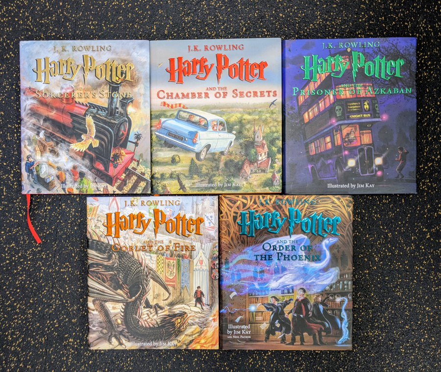 Dive into the enchanting world of Harry Potter with these gorgeous oversized editions illustrated by the talented Jim Kay. This collection includes the first five books, bringing to life the magical adventures of Harry, Ron, and Hermione with whimsical artwork that captures the essence of J.K. Rowling's beloved series. Each page is a visual feast, making these editions perfect for both young readers and collectors alike. Like new condition. Shipping Available.