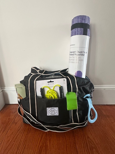 This convenient duffle bag is filled with items to help with a healthy life style! Includes a Nutribullet FLIP portable blender, yoga mat, exercise bands, Gaim speed rope, and handheld massager for lymph drainage. Perfect for all of us trying to live a healthier lifestyle!